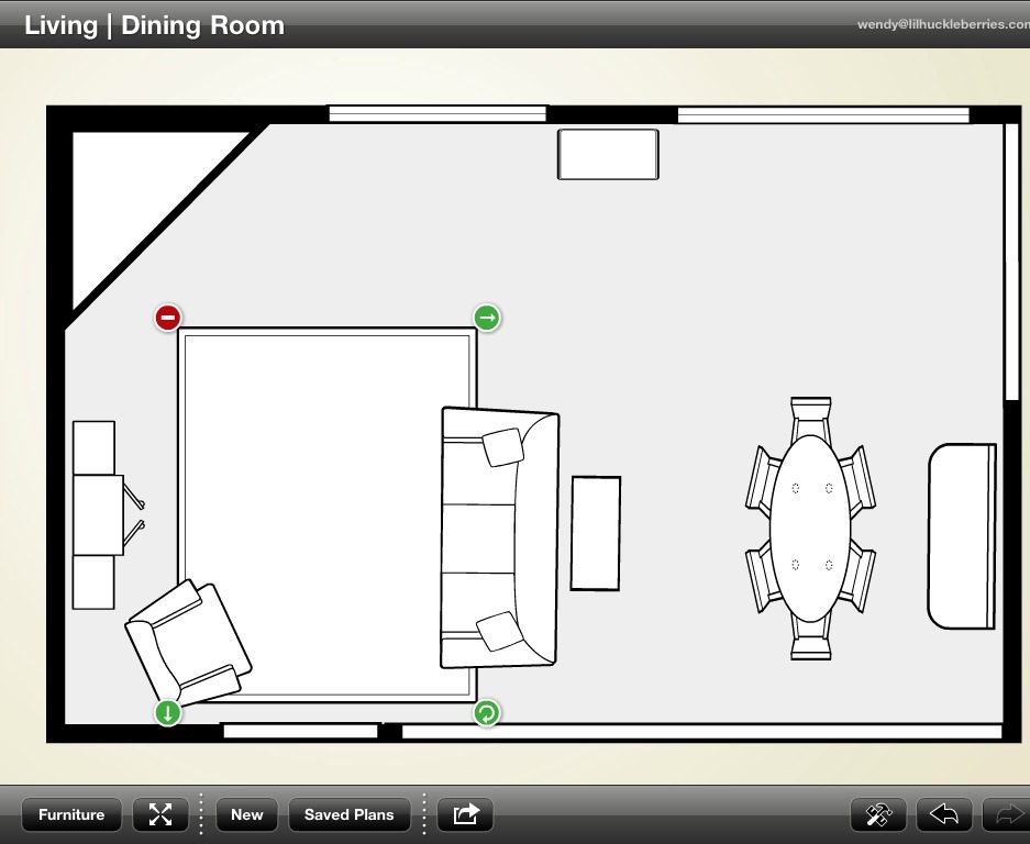 I was really impressed with intuitiveness of this app. Overall, I would highly recommend giving this program a try if you are looking for something to use for a furniture floor plan on your idevice. It makes for an easy way to try different furniture arrangements…perfect for someone who wants to try do a little DIY floor plan!